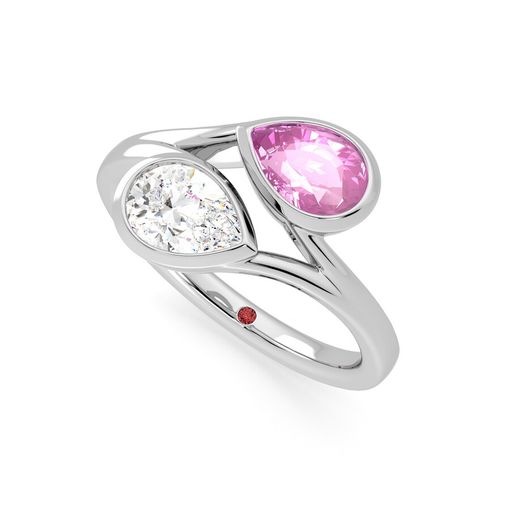 Pear diamond and a 0.70ct pear pink sapphire toi et moi engagement ring