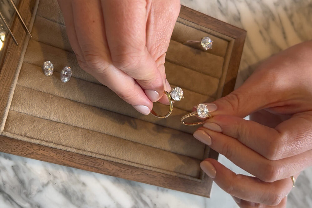 If you come in with your partner for a consultation, we’ll measure your ring finger with a ring sizer. However, if you can’t make it to a physical consultation or would like to maintain the element of surprise, there’s plenty of ways to get a gauge.